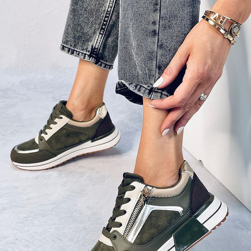 Stylish, comfortable women's sports shoes were made of eco leather. Set on a massive rubber platform. The soft insole will ensure comfortable use of the shoes. These sneakers are sure to go well with many styles! fabric artificial leather Footbed fabric Platform height 5 cm Size Insole lenght 36 23 cm 37 23.5 cm 38 24 cm 39 25 cm...