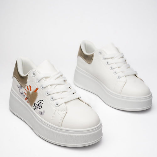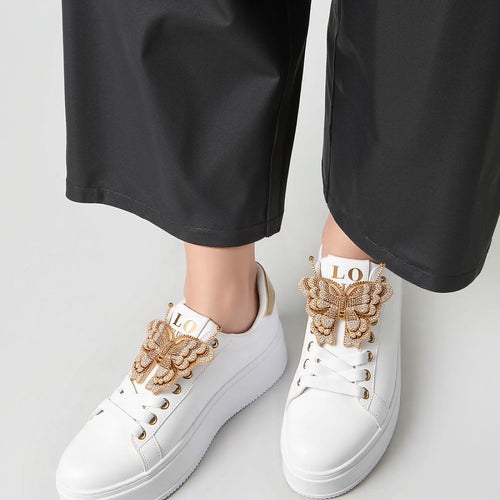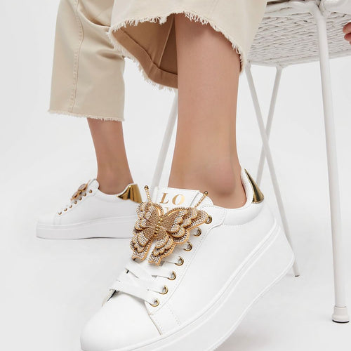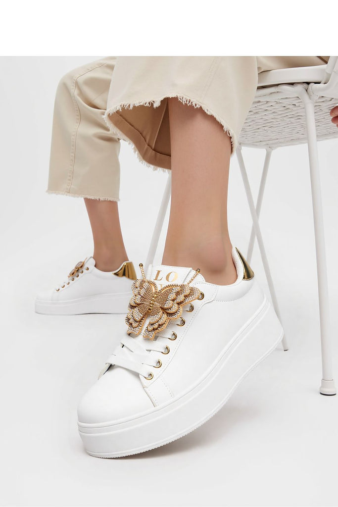 Stylish BUTTERFLY LUX Gold is a combination of classic white with a striking, gold butterfly-shaped ornament. The unique design gives the shoes elegance, and the raised sole ensures comfort throughout the day. Perfect for everyday styling that requires a special accent. Material: Upper: Synthetic leather Interior: Textile material Sole: Synthetic material fabric artificial leather