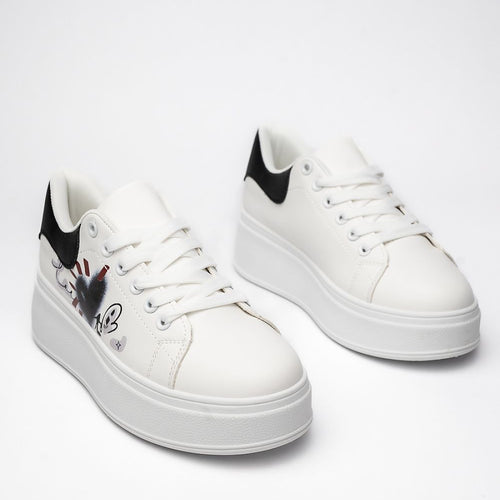 Women's LUMIX BLACK sneakers are a combination of modern style and comfort. The classic white upper adorned with a unique print and a contrasting black detail on the heel gives the shoes a unique character. The raised, solid sole guarantees wearing comfort and subtly accentuates the silhouette. Classic lacing ensures a perfect fit, and the universal design makes the sneakers...