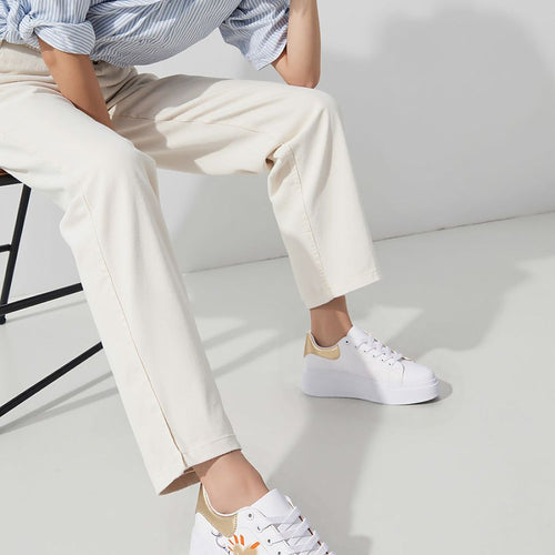 Women's sneakers LUMIX GOLD are a stylish combination of modern design and comfort. The classic white upper adorned with a unique print and a gold detail on the heel gives the shoes an elegant character. The raised, sturdy sole provides comfort for wearing and subtly elongates the silhouette. The classic lacing ensures a perfect fit, and the versatile style makes...