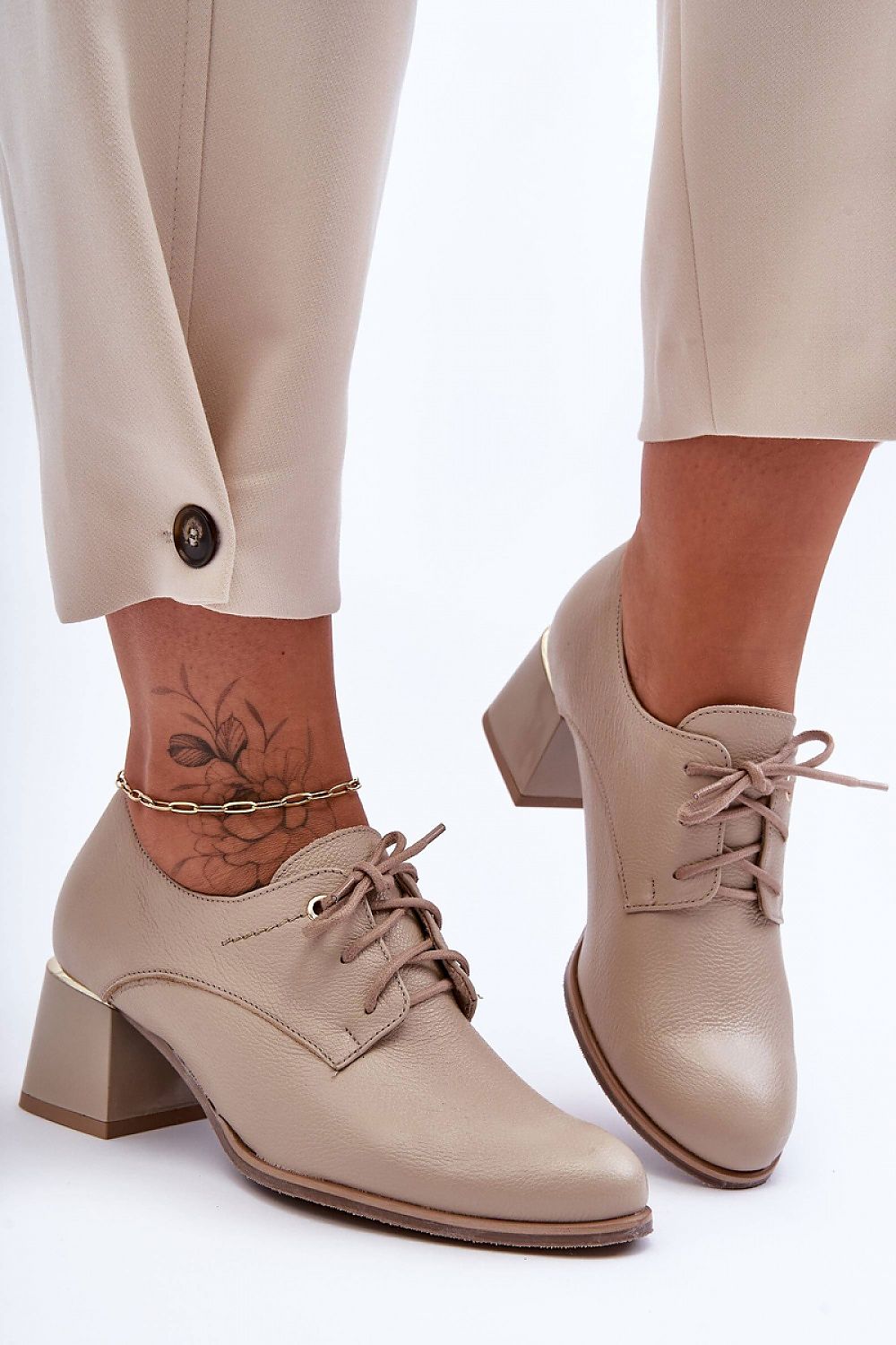 Elegant women's half shoes were made of natural leather and set on a heel. This model has a stiffened heel counter and lacing. The soft leather insole will ensure comfortable use of the shoes. These shoes will work well in many stylings! Be sure to check out our entire collection of half shoes!