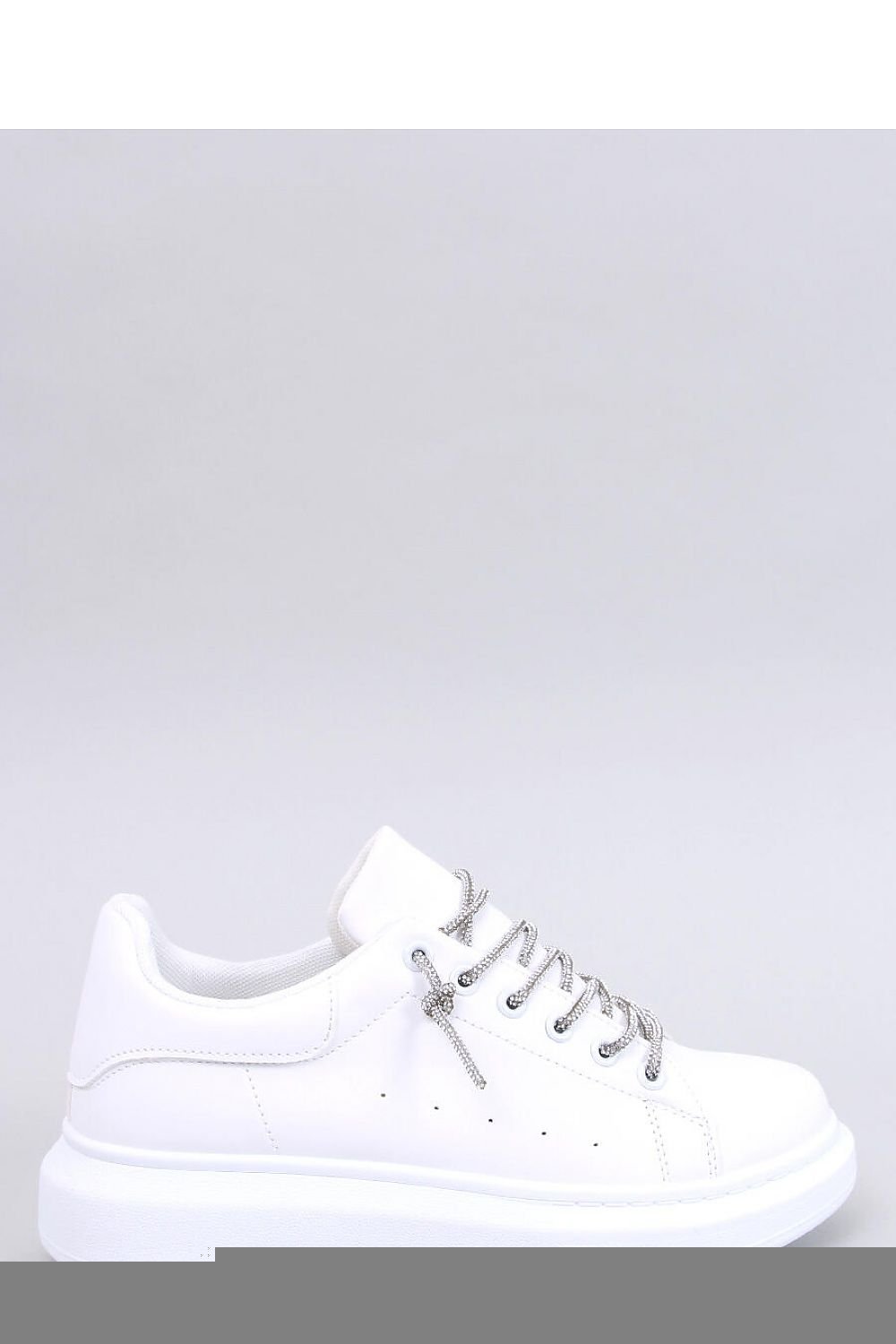 White sneakers - sports shoes for women. They are an absolute must have of this season! The model with glittering crystal laces will steal your heart : ) Not only do they look great, they are also mega comfortable. The interior of the shoes is lined with fabric. The outer material - ecological leather.