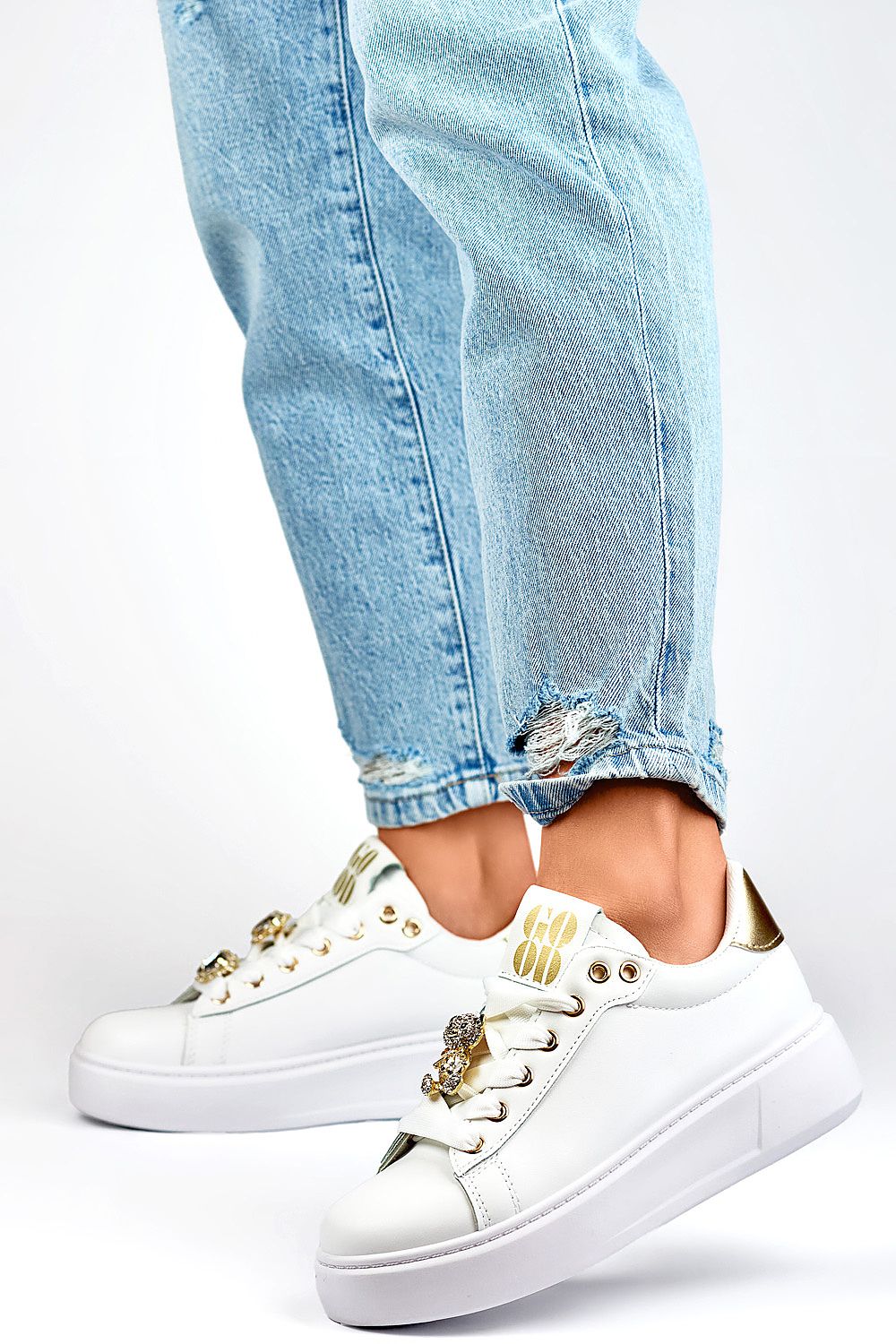 These white sports shoes are the perfect combination of style and functionality, ideal for active women who want both comfortable and fashionable footwear. Their upper is made of durable eco-friendly leather, which not only looks attractive, but is also environmentally friendly. The interior of the shoes is padded with a soft textile insole, providing extra comfort during training or walking. The material adapts perfectly to the foot, providing adequate support and cushioning. Lacing allows you to adjust the fit of the shoe to your individual preferences, which is especially important during sports activities, providing stability and confidence in movement. The heel height of 4.5 cm adds a little extra height to the sports shoes, which can benefit posture and comfort. The round toe cap provides adequate space for the toes, making the shoes comfortable even during long wear. These white athletic shoes are an ideal choice for spring and summer, but due to their functionality and versatile design, they can be worn all year round, perfect for both training and everyday wear. They are ideal for women who appreciate an active lifestyle and do not want to give up a fashionable look even when playing sports.