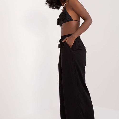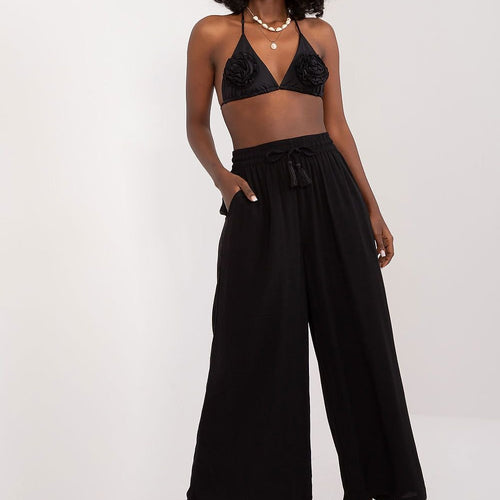 Button and zipper closure, these fabric pants are the perfect choice for women who appreciate elegance and comfort. With their classic cut and finish, they are a versatile wardrobe item suitable for various occasions. The elegant cut makes these pants perfect for both everyday outfits and more formal events. The wide legs add sophistication and class while ensuring comfort. Ideal...