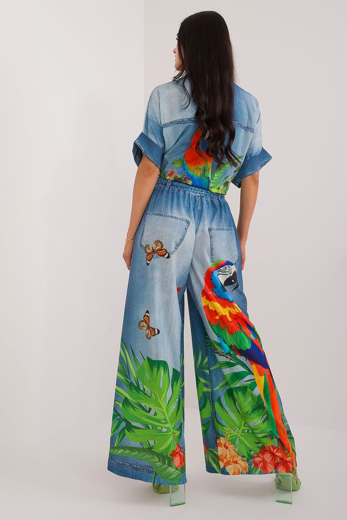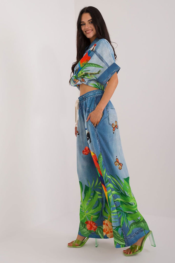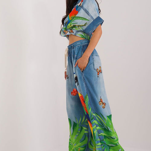 Stylish palazzo pants, ideal for everyday wear, made of lightweight material for comfort and freedom of movement. These casual pants are distinguished by a colorful print that adds a unique touch. Made of viscose with added polyester, they are breathable and pleasant to the touch. They have a high waist, which accentuates the waist, and wide legs, giving lightness and...