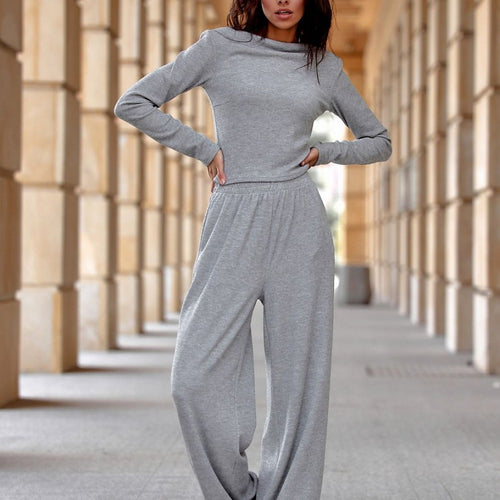 Harper pants are a model with wide, wide-legs that guarantee comfort and ease of use. This basic model is made of melange knitted material. The pants feature an elastic waistband that fits well to the body and prevents slipping. Side pockets increase functionality. The main advantage of this model is the skin-friendly, elastic material that provides a feeling of comfort...