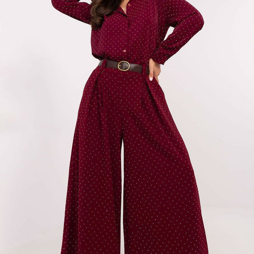 Delight in a stylish look thanks to women's palazzo pants, which combine elegance with refined shine. Made from a high-quality blend of polyester and viscose, they provide comfort and excellent presentation. The high waist accentuates the waist, while the wide legs add lightness and elegance, perfect for formal outings or events. The entire surface of the fabric is adorned with...