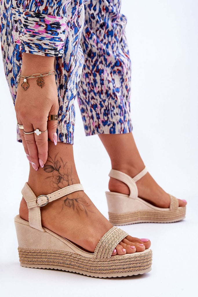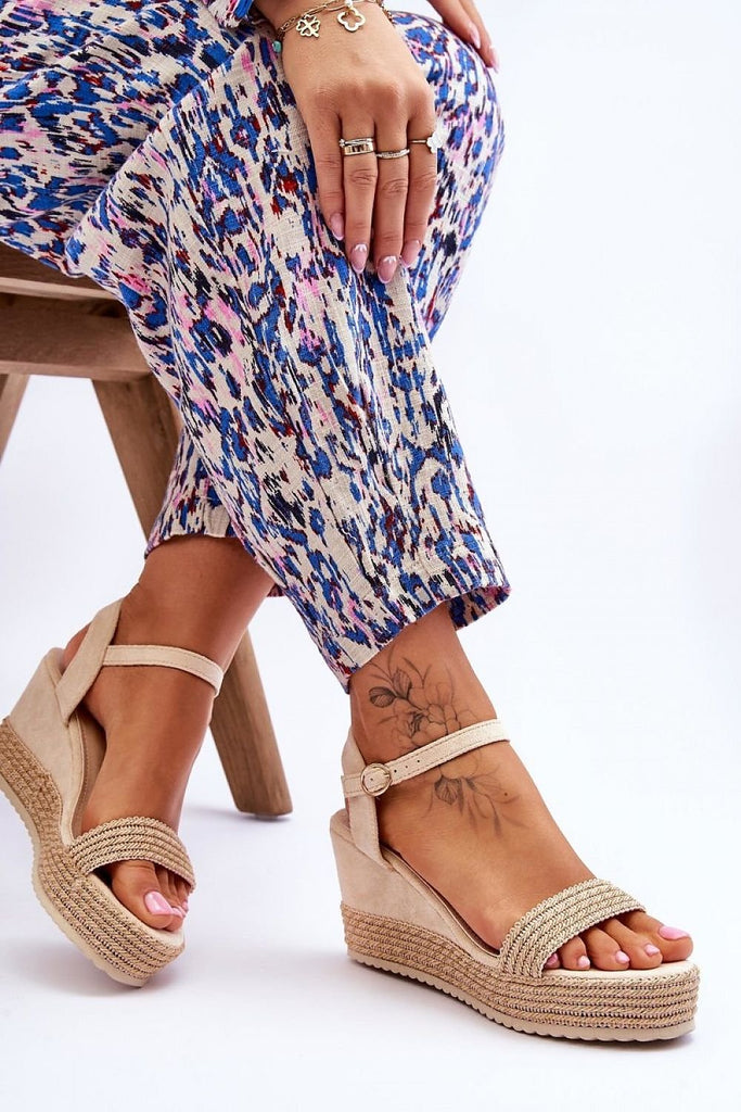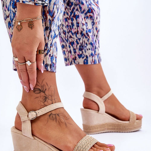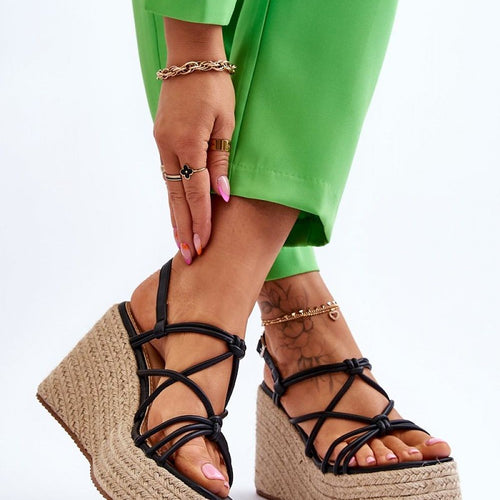 Sandals on an anchor are a classic among women's summer footwear. The anchor was decorated with jute braid. Soft eco leather insole provides high comfort. The upper was made of soft eco leather. The shoes have an adjustable strap closure with a buckle. These sandals are a perfect choice for summer styling. fabric imitation leather suede Footbed artificial leather Heel...