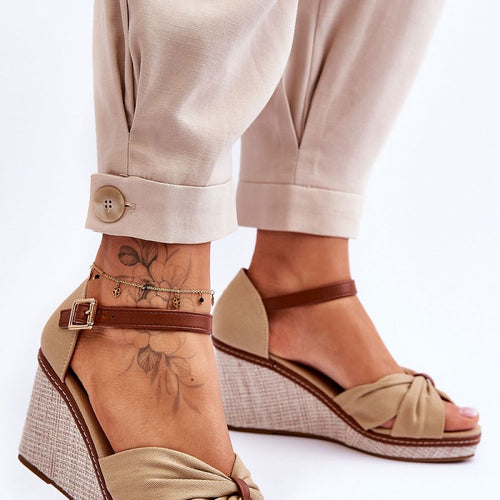Classic women's sandals have been set on an anchor and a platform. This model has two crisscrossing straps on the front. The soft eco leather insole will ensure comfortable use of the footwear. The sandals have a platform decorated with imitation braids. Fastened with an adjustable strap with a buckle. fabric artificial leather Footbed artificial leather Heel height 7 cm...