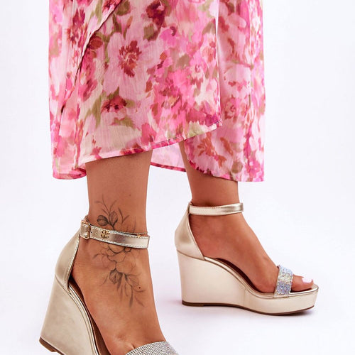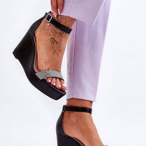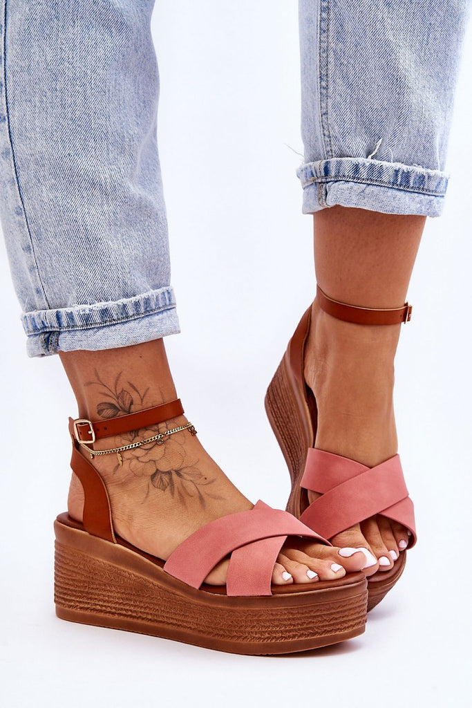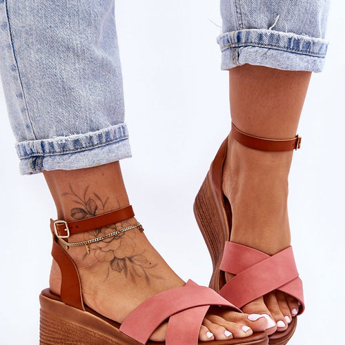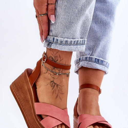 Classic women's sandals were made of eco leather. They have a soft insole with delicate perforation. There are two crisscrossing straps on the front. The sandals are set on a platform and an anchor. This model is fastened with an adjustable strap with a buckle. This model should be yours! fabric artificial leather Footbed artificial leather Heel height 9.5 cm...