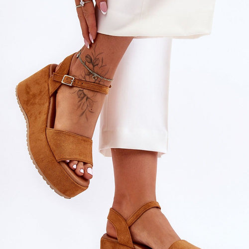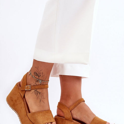 Great women's sandals made of eco-suede. They have a fastening around the ankle with an adjustable strap with a buckle. The insole is made of soft eco leather. The sandals have an open toe and heel. Set on a massive platform and an anchor. These sandals are the perfect model for hot days! fabric imitation leather suede Footbed artificial leather...