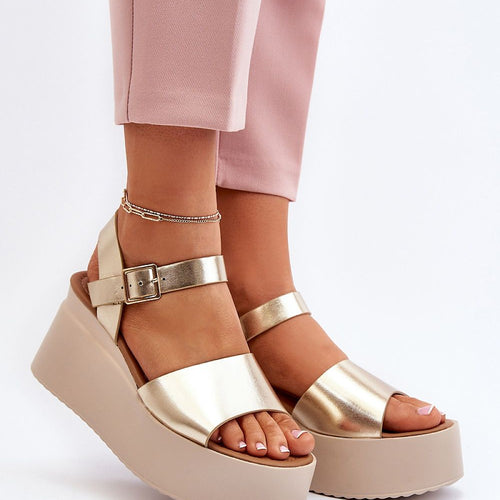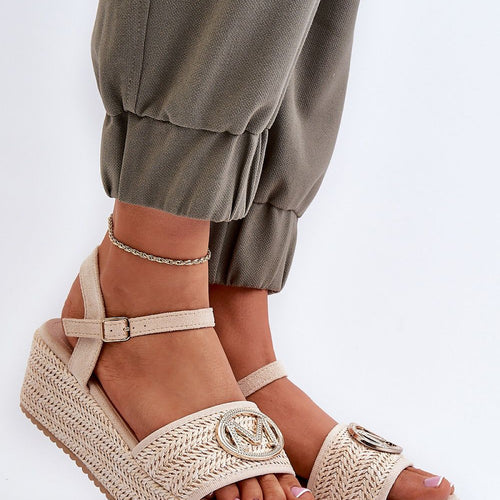 These stylish women's sandals look very glamorous thanks to the braided design, which adds to their unique appeal. Set on a platform along with an anchor, they provide comfort and stability while wearing. Gold embellishment adds elegance and class to any summer styling. Fastened with an adjustable strap with buckle, they are not only fashionable, but also practical and comfortable...
