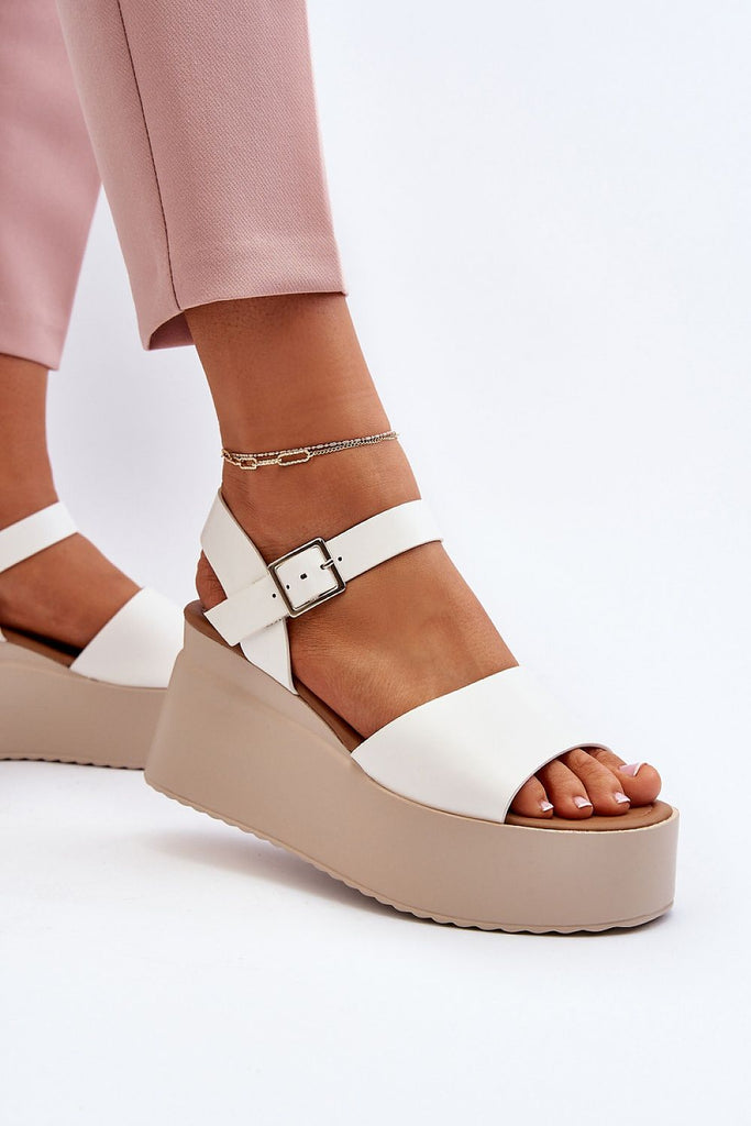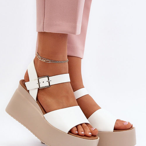 Women's sandals made of eco leather. Set on an anchor and platform, which not only adds to their fashionable look, but also provides stability when walking. Fastened with an adjustable strap with buckle, you can easily adjust them to your foot. fabric artificial leather Footbed artificial leather Heel height 8 cm Platform height 4.5 cm Size Insole lenght 36 23...