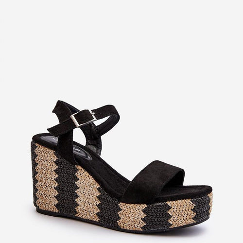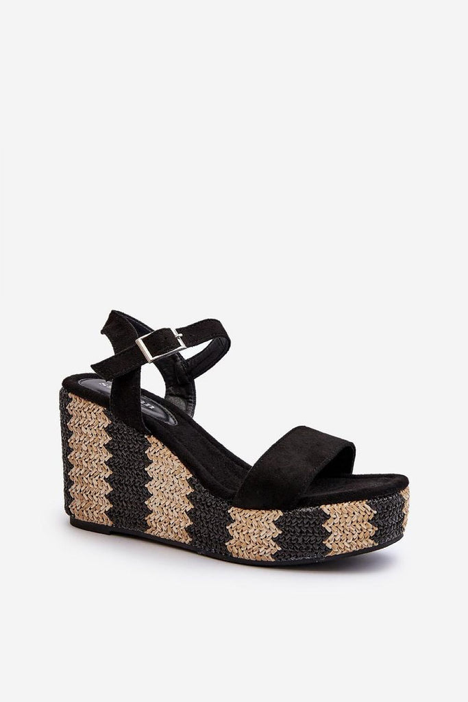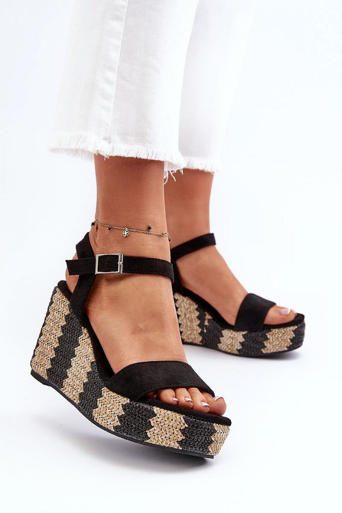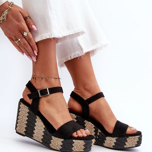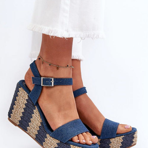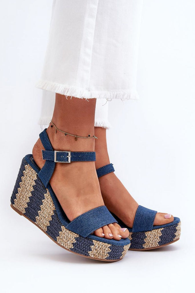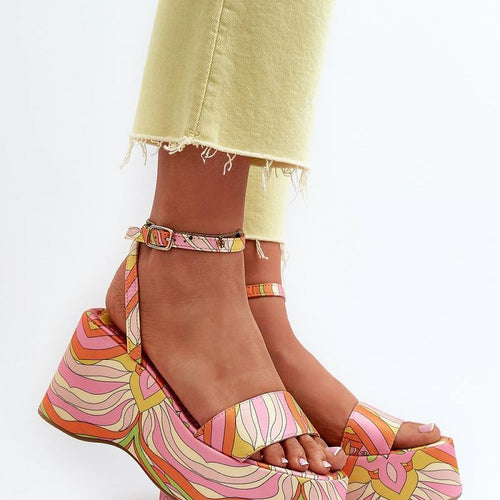 Women's sandals made of textile material. Set on an anchor and platform, which not only adds to their fashionable look, but also provides stability when walking. Fastened with an adjustable strap with a buckle, you can easily adjust them to your foot. This model will be perfect for summer walks or outdoor gatherings! fabric fabric Footbed artificial leather Heel height...