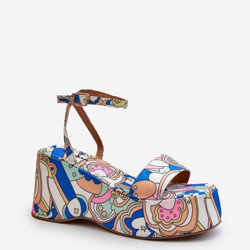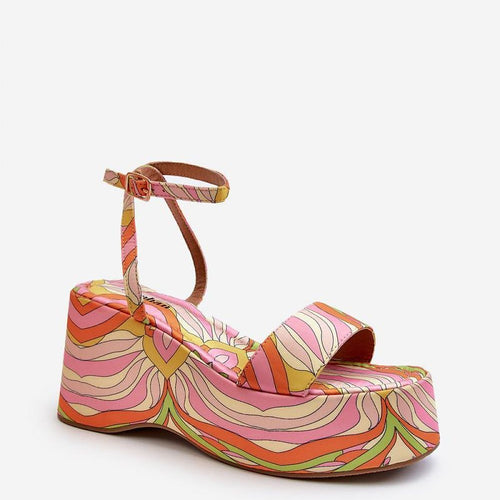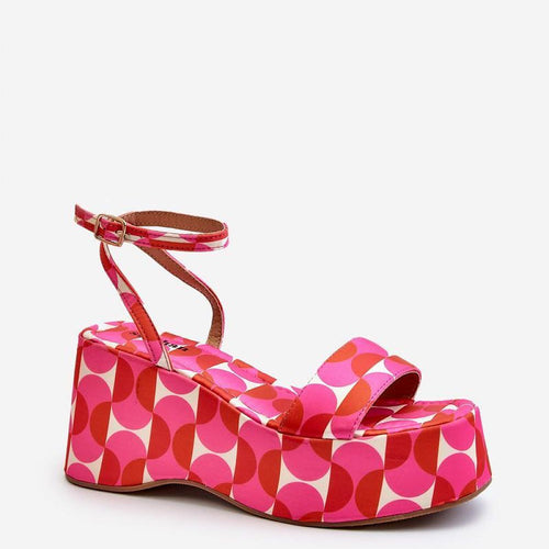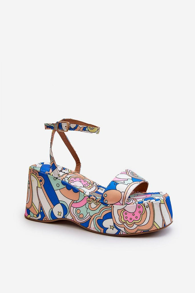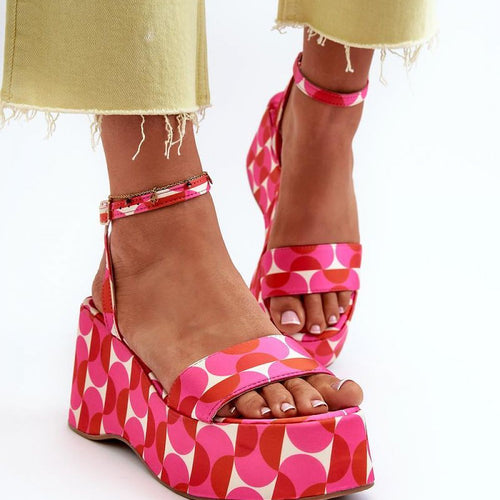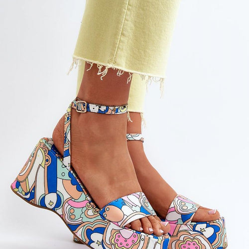 Stylish women's sandals with interesting patterns. Set on a platform and an anchor. Made of textile material. Fastened with an adjustable strap with a buckle. This model will undoubtedly enrich your summer stylizations! fabric fabric Footbed fabric Heel height 9 cm Platform height 4.5 cm Size Insole lenght 36 23.5 cm 37 24 cm 38 24.5 cm 39 25 cm...