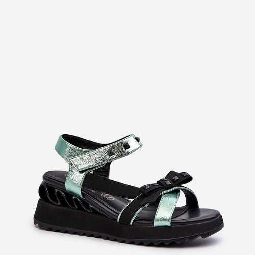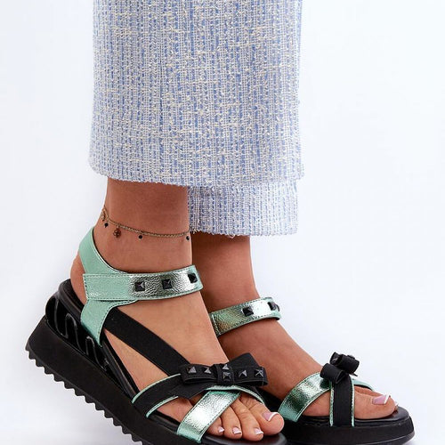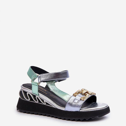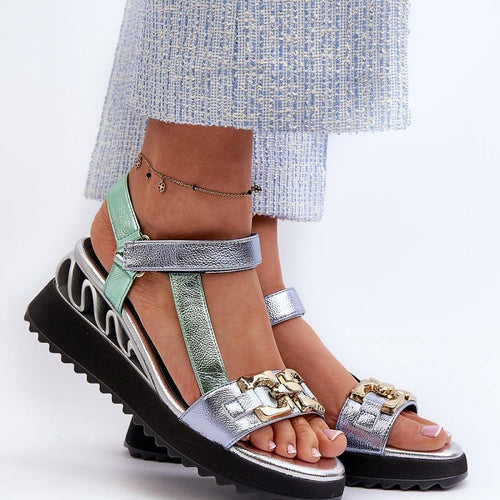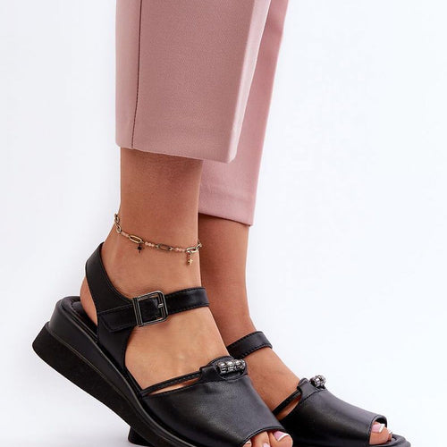 Women's sandals made of natural leather are a combination of classics and comfort. Set on a platform, they provide stability and comfort while wearing. The embellishment on the front adds sparkle, emphasizing their unique look. Fastened with an adjustable strap with a buckle, they guarantee a perfect fit to the foot. These sandals are not only stylish, but also practical...