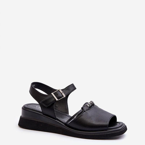 Women's sandals by Vinceza. Made of genuine leather. The wedge adds lightness and stability to the silhouette, perfectly complementing summer stylings. Fastened with an adjustable buckle strap, ensuring a perfect fit to the foot. fabric natural leather Footbed artificial leather Heel height 4.5 cm Size Insole lenght 36 23.5 cm 37 24 cm 38 24.5 cm 39 25 cm 40...