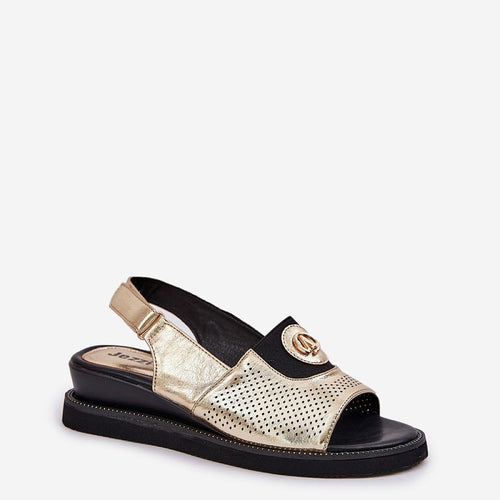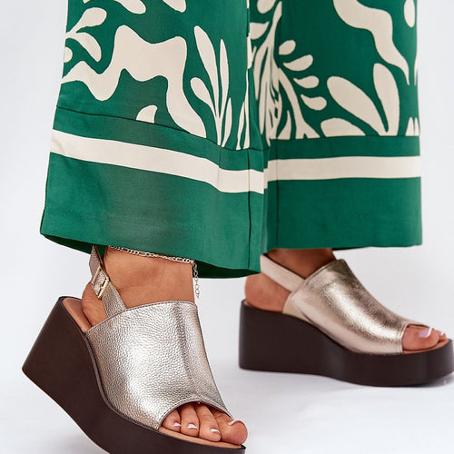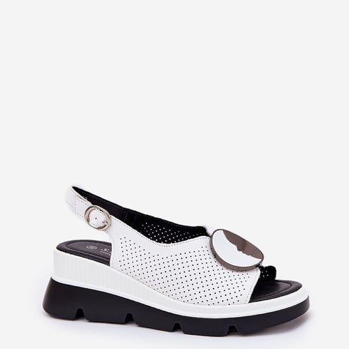 Women's sandals by S.Barski. Made of natural leather, they are an elegant proposition for warmer days. Set on a wedge heel. Decorative detail at the front. Fastened with a buckle with an adjustable strap. These sandals go great with summer outfits, perfectly matching dresses, skirts, or pants. fabric natural leather Footbed natural leather Heel height 5.5 cm Size Insole lenght...