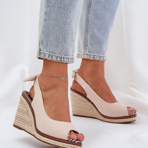 Women's sandals with a braid that combine style with comfort. Set on a wedge heel. Fastened with an adjustable strap with a buckle, allowing for a perfect fit to the foot. Covered heels add a classic look, and the soft insole guarantees comfort while walking. Perfect for warm days, they go perfectly with dresses, skirts, and pants, adding a touch...