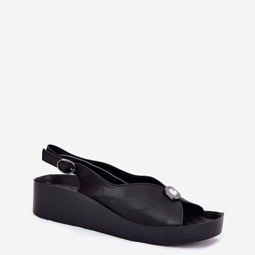 Elegant women's sandals by S.Barski. Set on a platform and wedge heel. At the front, there is a subtle decoration that adds elegance. Fastened with an adjustable buckle strap, ensuring a perfect fit and comfort for all-day wear. Stylish and comfortable footwear for any occasion. fabric natural leather Footbed natural leather Heel height 4 cm Platform height 1.5 cm Size...