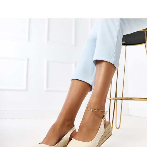 Wedge sandals are a stylish and comfortable option for warm days. Made of lightweight fabric, they look subtle and feminine, fitting perfectly into summer stylizations. The interior lined with suede-like eco leather ensures wearing comfort, even for many hours. The 5 cm wedge gently lifts the silhouette, without sacrificing comfort. The model fastens with a buckle, allowing for a perfect...