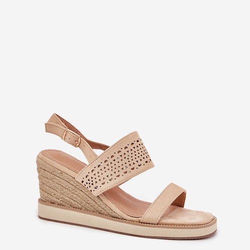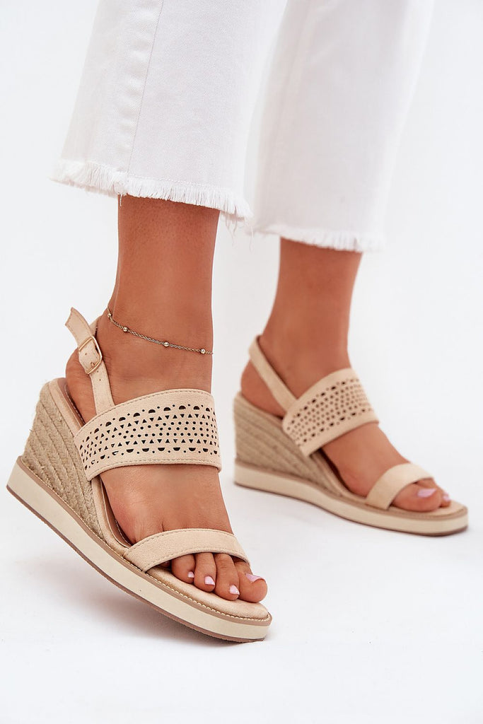 Women's sandals made of eco suede, set on a wedge with a braid, are a perfect choice for summer days. Fastened with a buckle with an adjustable strap, they provide comfort and perfect fit. The openwork pattern on the strap adds lightness and subtlety to them. Perfect for summer dresses and fabric trousers, combining a stylish look with comfort, creating...
