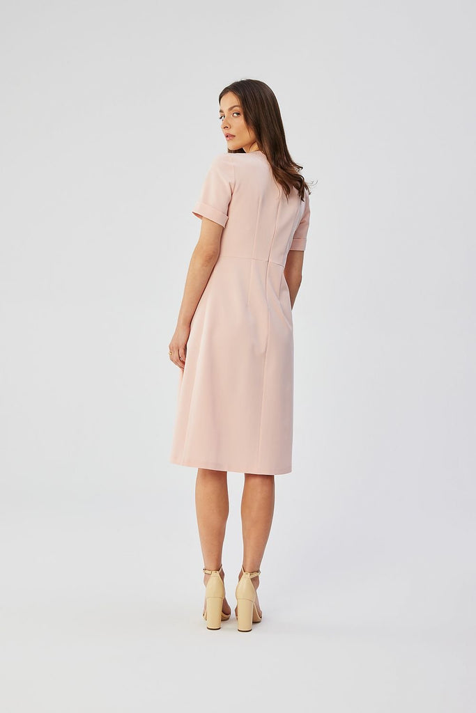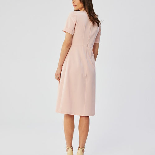Elegant dress with unconventional shoulder buffets. Creation very well cut, perfectly emphasizes the waist. The dress is fastened with a covered zipper. Model suitable for casual parties as well as those more elegant. Available in stylish colors. Polyester 30 % Viscose 70 % Size Lenght Chest Waist 34 88 cm 86 cm 66 cm 36 89 cm 90 cm 70...