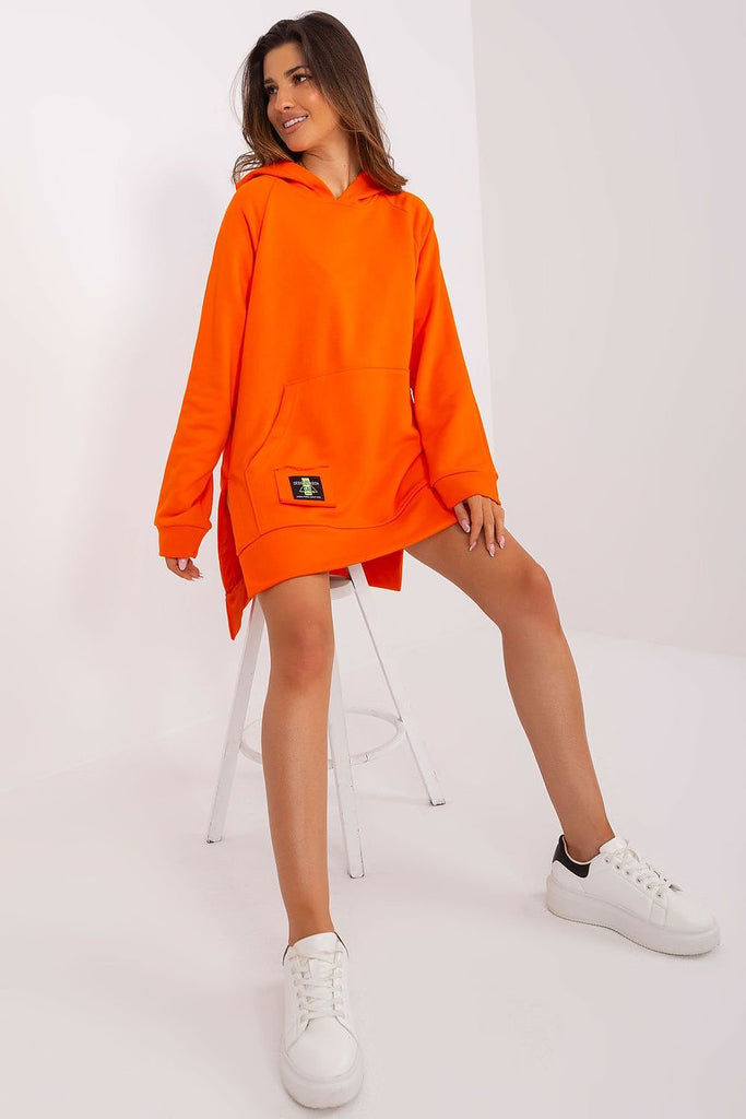 This smooth sweatshirt is the essence of casual and sporty style. Equipped with long sleeves and a practical hood, it is ideal for an active day or evening relaxation. A distinctive feature is the kangaroo pocket, which adds to its charm and allows you to hide your hands on colder days. Its back is slightly extended for a modern look...