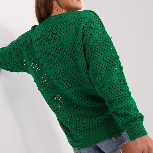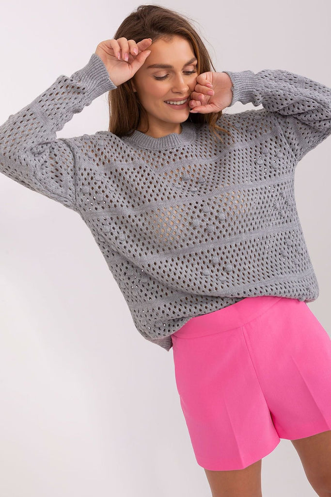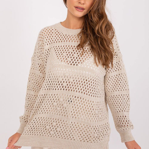 We present an openwork sweater that fits perfectly into a casual style for everyday occasions. Its characteristic openwork pattern gives lightness and subtlety. It is made of pleasant to the touch acrylic, guaranteeing comfort in wearing. The long sleeve and standard length ensure comfort and versatility. The round neckline adds a charming touch. This is a sweater that will add...