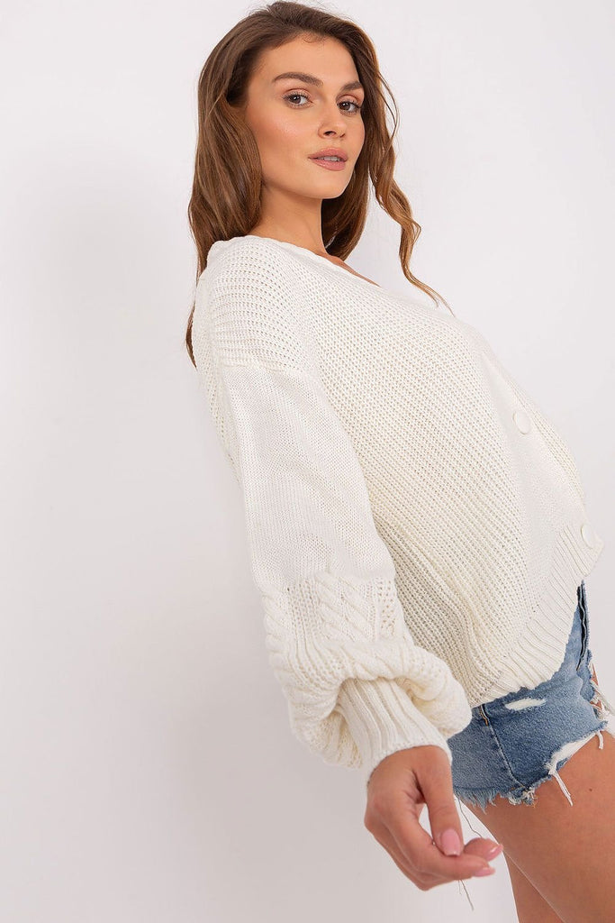 Here is a casual sweater, perfect for a variety of occasions, from casual to days at work. Made of soft acrylic for comfort. The standard length and long sleeve allow freedom of movement. The heart neckline adds a charming touch. Buttons add elegance and character, and the buff sleeves give the sweater a unique detail. It's a combination of style...