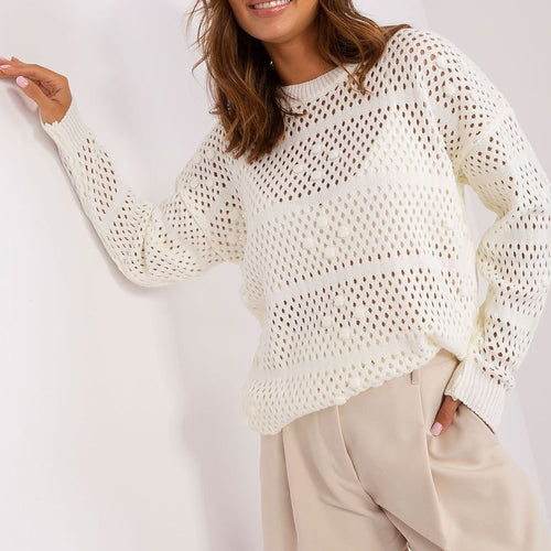 We present an openwork sweater that fits perfectly into a casual style for everyday occasions. Its characteristic openwork pattern gives lightness and subtlety. It is made of pleasant to the touch acrylic, guaranteeing comfort in wearing. The long sleeve and standard length ensure comfort and versatility. The round neckline adds a charming touch. This is a sweater that will add...