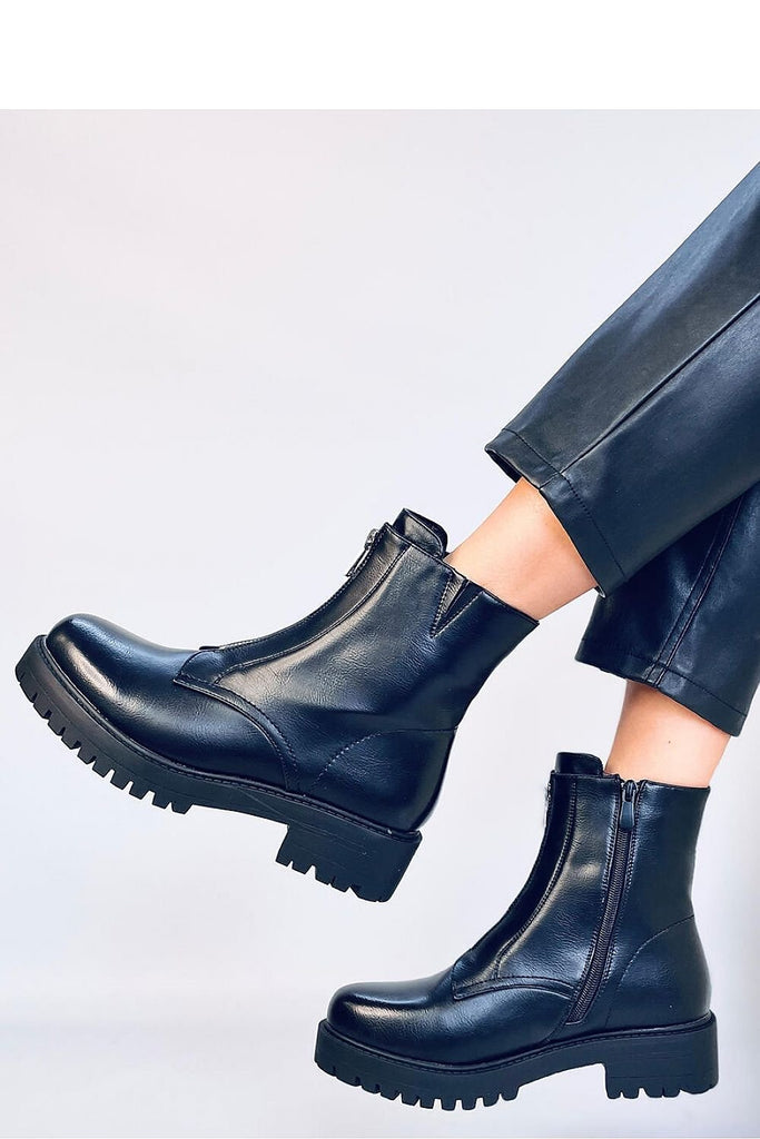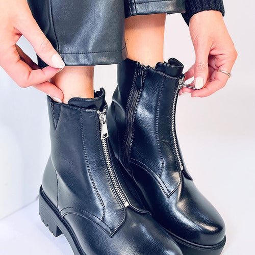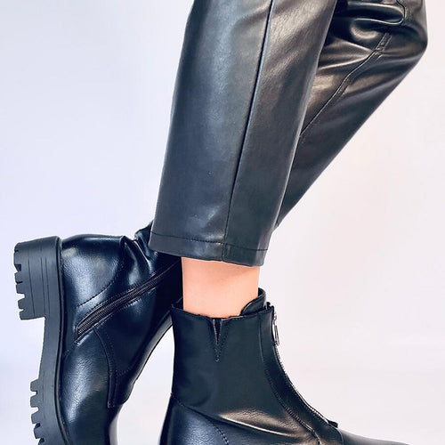 Women's veneer boots on a protector. They have the most fashionable cut in a military style and in a black color that goes with everything.... We are definitely in favor! A zipper in the front diversifies the design of the boots, but in addition they have a zipper closure on the side of the upper. They are made of eco...