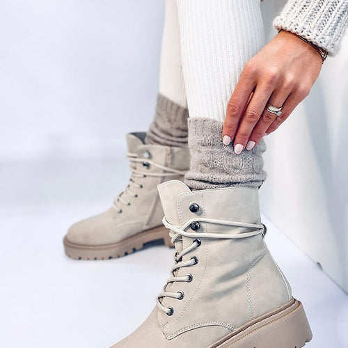 Women's lace-up boots on protector. If you're looking for everyday shoes, this model will definitely appeal to you : ) They are classically laced, so you can adjust them perfectly to your foot's stance, but they also have a zipper closure on the side of the upper. They are made of delicate ecological leather, and lined with soft fur inside....