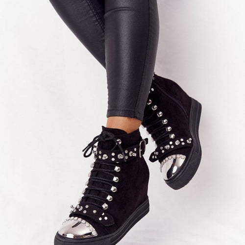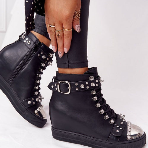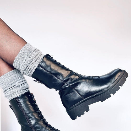 Licensed women's boots ? baggers with a high upper. They have a timeless cut in a matching to everything - black color. They are classically laced, so you can perfectly adjust them to the size of your foot, but they also have a zipper closure on the side of the upper. They are made of organic leather, on a foam...