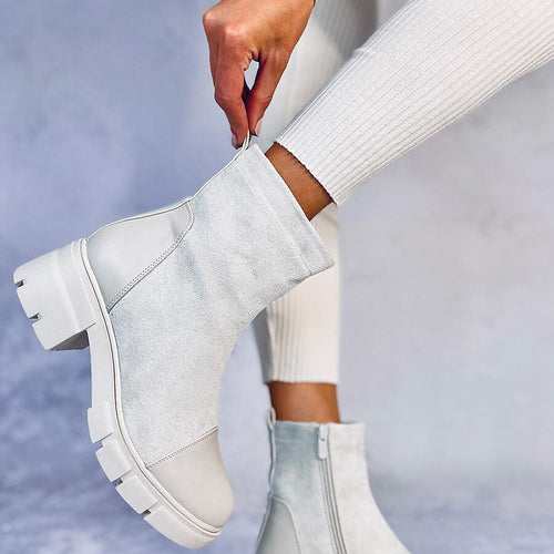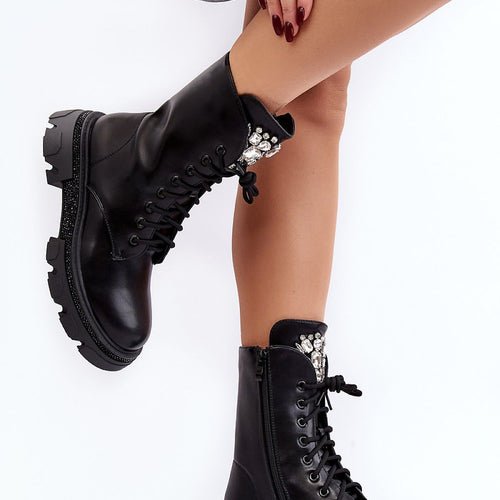 Women's boots are the perfect combination of style and comfort. They are made of eco leather. They are set on a flat heel and platform, which ensures stability and comfortable wearing. The interior of the boots is insulated with a shoe blanket, which makes them ideal for colder days. A jewelry embellishment on the tongue adds a note of elegance...
