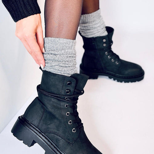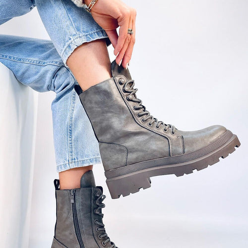 Lace-up women's boots ? trapper boots on protector. They have a timeless cut with strikingly rubbed noses.... Be sure to give them a chance to conquer your closet! They have a practical zipper on the side of the upper for easy putting on. They are made of eco-friendly nubuck, on a foam lining. fabric nubuck ecological warmers foam padding Heel...