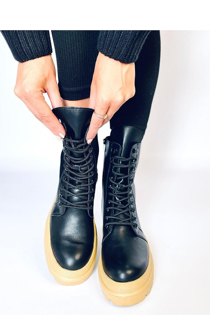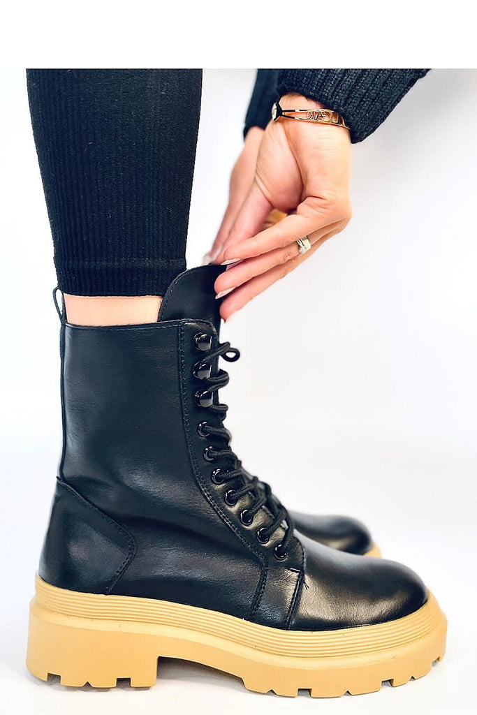 Women's lace-up boots on protector. If you're looking for everyday shoes, this model will definitely appeal to you : ) They are classically laced, so you can adjust them perfectly to your foot's stance, but they also have a zipper closure on the side of the upper. They are made of delicate ecological leather, and lined with soft fur inside....
