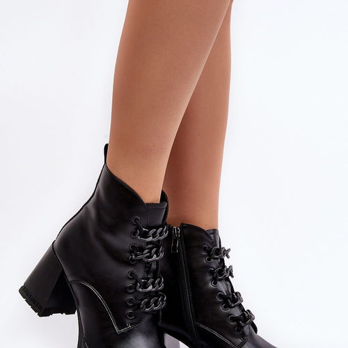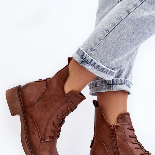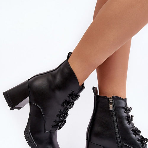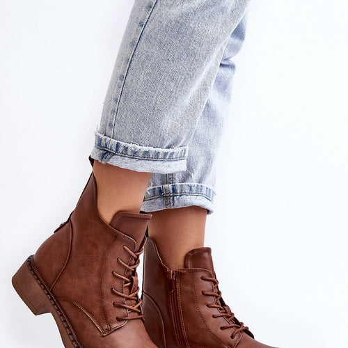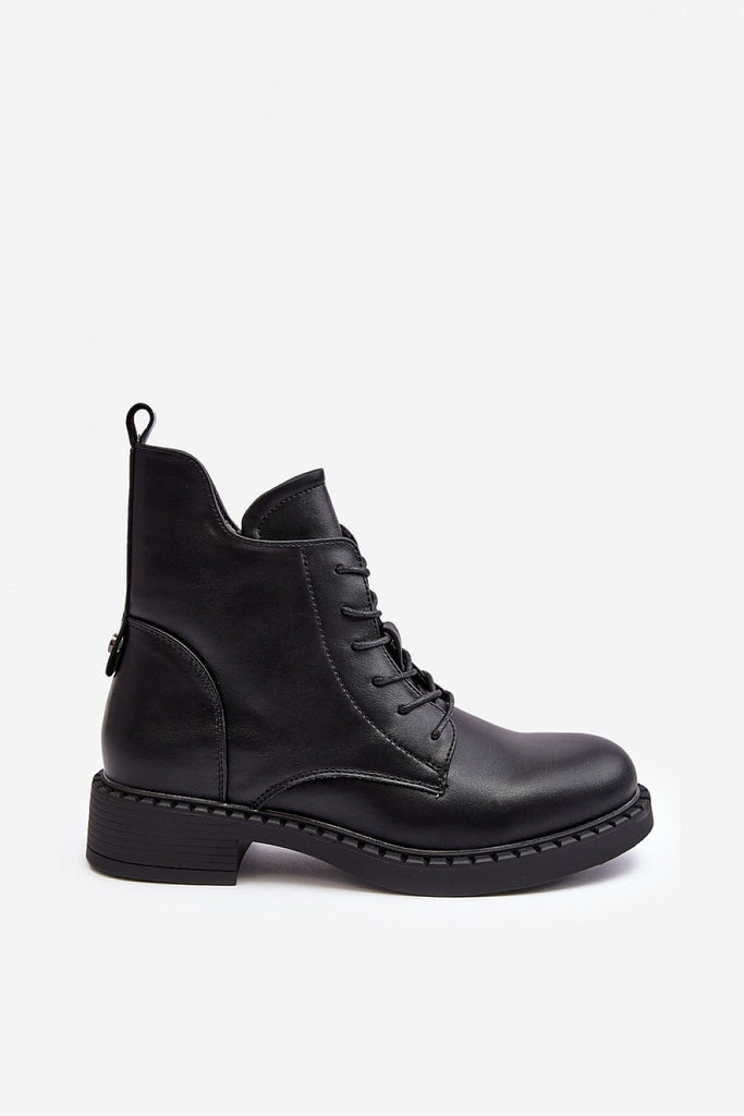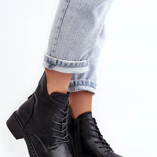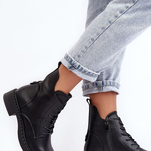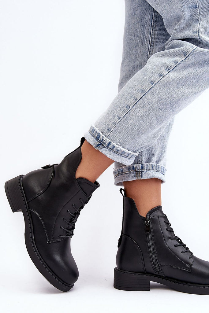 Classic women's boots on a flat, stable heel. Made of eco leather, Set on a flat heel. Ankle-length upper with zipper and lacing. Rounded toes. The inside is insulated with a nice-to-touch shoe blanket. You will match this model with many autumn-winter stylizations! You should definitely have them! fabric artificial leather warmers shoe cover Footbed shoe cover Upper height 15...