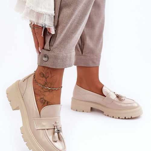 Fashionable women's half shoes made of eco leather. Set on a flat heel and a thick sole. Rounded toe caps. Strap at the front decorated with tassels. The heel counter is stiffened. Soft eco leather insole will provide comfort during use. This model will complement any styling, whether with dresses or jeans! fabric artificial leather Footbed artificial leather Heel height...