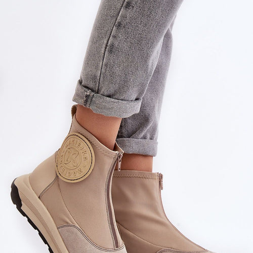 Women's boots in a sporty style by Maciejka. Made from a combination of top quality natural leather and fabric. Large brand logo on the side of the upper. This model is fastened with a zipper on the front. Rounded toe caps. Stiffened heel counter. fabric natural leather + fabric Footbed fabric Upper height 13 cm Heel height 3 cm Size...