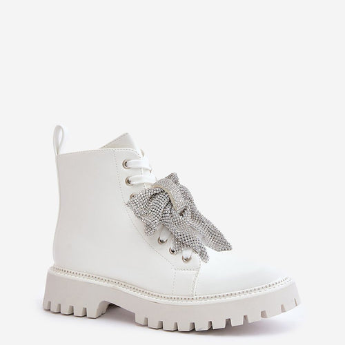 Flat-heeled boots combine comfort and style, fitting perfectly into everyday and unique styling. Rounded toes give them a classic look. The zipper closure makes it easy to put on quickly, and additional lacing allows for a perfect fit to the foot. The main advantage of this model is the bow with zircons placed on the front, which adds an elegant...