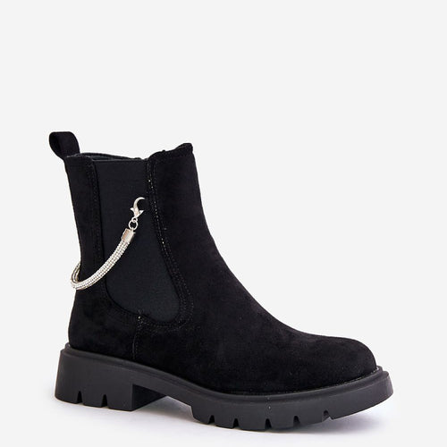 Women's boots made of eco-suede. This model is distinguished by a decorative, shiny, detachable strap, which gives a unique charm. The inside is insulated with a shoe blanket, which will provide warmth and comfort on colder days. fabric imitation leather suede warmers shoe cover Footbed shoe cover Upper height 15.5 cm Heel height 4 cm Size Insole lenght 36 23.5...