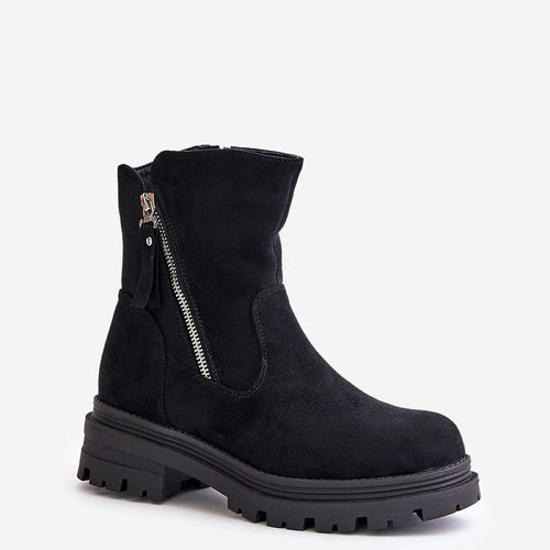 Women's boots made of ecological suede leather are the perfect solution for colder days. The model set on a flat heel and a platform provides comfort and stability. The rounded toe adds a subtle touch, and the interior is insulated with soft shoe blanket for warmth. Zippered for easy on and off. A stylish and practical choice for the autumn-winter...