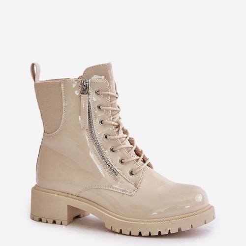 Women's boots made of natural leather, with an ankle-length upper. Zippered model, with additional lacing for a better fit. Rounded toe-cap, which provides comfort for everyday wear. fabric natural leather warmers shoe cover Footbed natural leather Upper height 12 cm Platform height 3 cm Size Insole lenght 36 23.5 cm 37 24 cm 38 24.5 cm 39 25 cm 40...