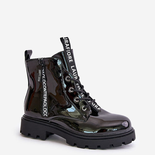 Stylish women's boots with warming, ideal for cold days. The model is zippered and additionally laced, which ensures a perfect fit. The upper is decorated with fashionable inscriptions, adding an original character. A great choice for women who appreciate comfort and a fashionable look. fabric artificial leather warmers shoe cover Footbed shoe cover Upper height 12.5 cm Heel height 4...