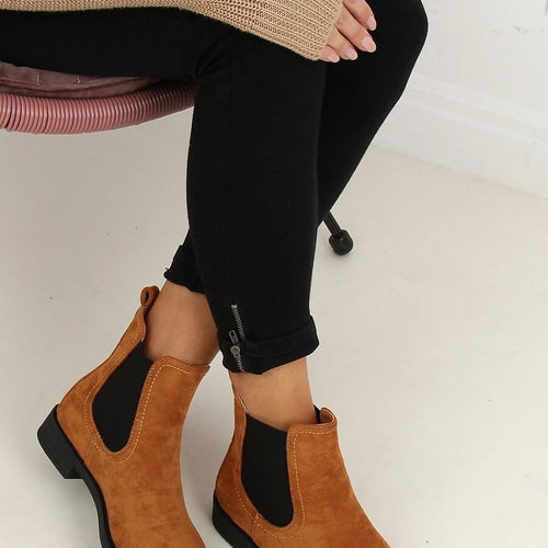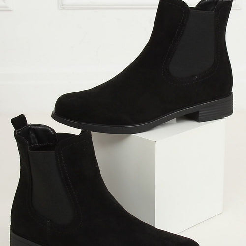 Low cowboy ankle boots made of eco suede are a perfect choice for any occasion. They are characterized by a latticed upper, which adds lightness and subtle charm. The column heel with a mirrored element attracts attention and adds a bit of shine to the boots. Fastened with a zipper, they provide comfort and ease of putting on. The pointed...