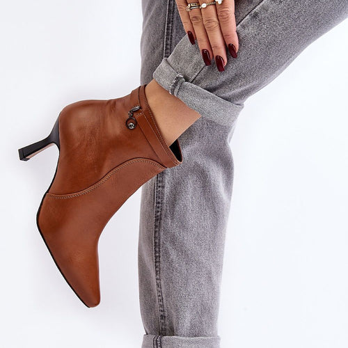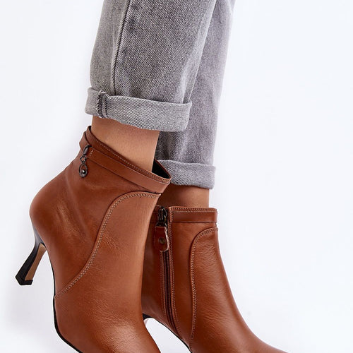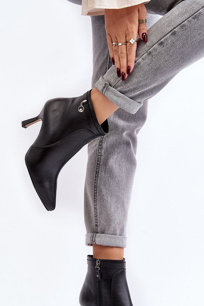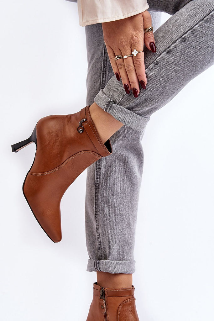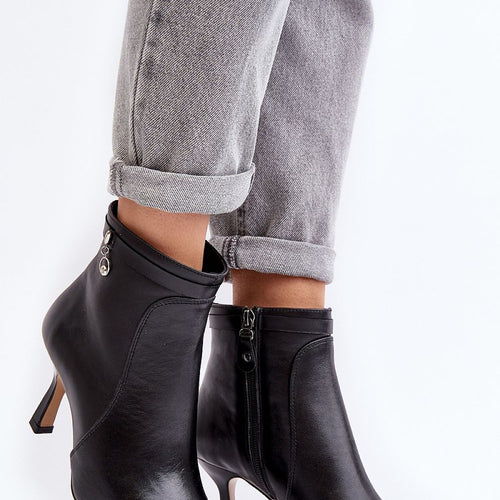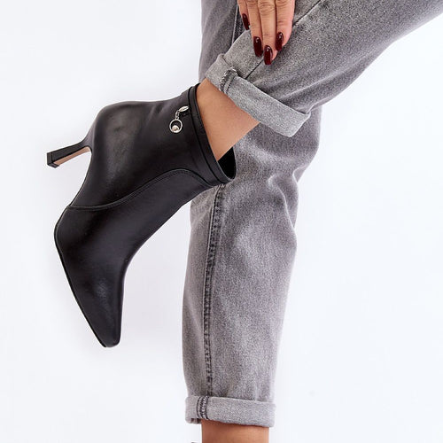 Women's boots from the Maciejka brand. Made of natural leather. Set on a stiletto heel. Pointed nose will optically slenderize the legs. Thin strap with a decoration on the top of the upper. Be sure to check our whole offer of Maciejka shoes. fabric natural leather Footbed fabric Upper height 10 cm Heel height 7 cm Size Insole lenght 36...