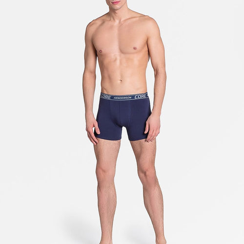 Smooth men's boxers with slightly longer than standard legs. Sporty style, with profiled front, fashionable printed elastic waistband, made of high quality cotton knit. 2-pack in grey and navy blue. Cotton 95 % Spandex 5 % Size Waist width L 88-92 cm M 84-88 cm XL 92-96 cm XXL 96-100 cm XXXL 100-104 cm
