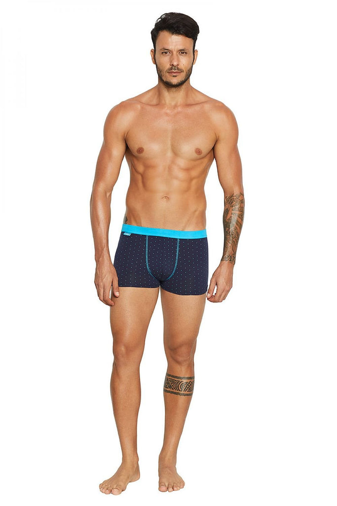Duet - blue and navy blue, sporty men's boxers, highlighted with a light, nautical pattern. The set includes both underwear pieces, which makes it a very practical solution. The whole is soft and very comfortable, with a distinctive elastic waistband highlighted with the brand logo inscription. Cotton 95 % Spandex 5 % Size Waist width L 90-96 cm M 82-88...