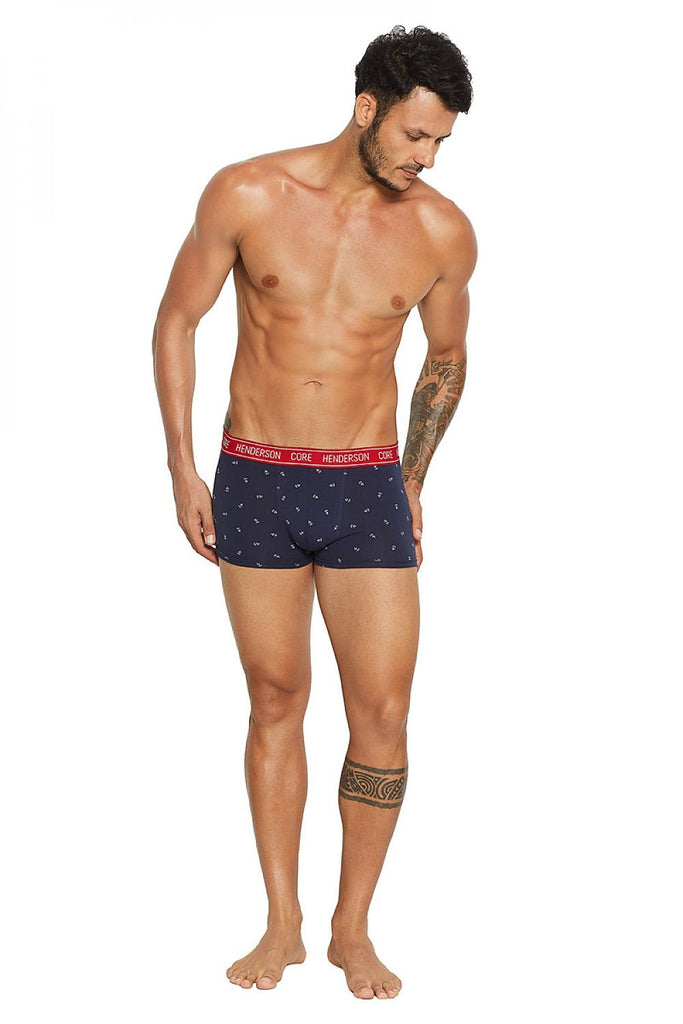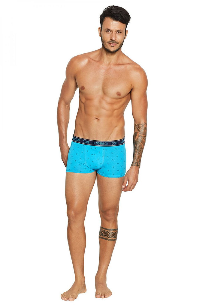Set of 2 men's boxer shorts with expressive elastic waistband, printed with Henderson brand logo. The boxers look great thanks to a slightly shiny elastic waistband, perfectly matched with a colourful bottom. They have a sports cut with a comfortably profiled front. Comes with navy blue and blue boxers. Cotton 95 % Spandex 5 % Size Waist width L 90-96...